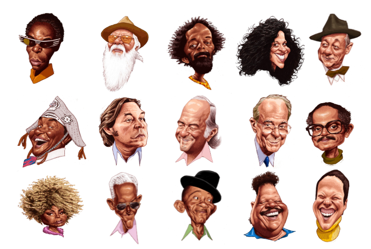 Foram homenageados ícones como os mestres da Bossa Nova, Tom Jobim, Vinícius de Moraes e João Gilberto, grandes instrumentistas, como Jacob do Bandolim, Moacir Santos e Naná Vasconcelos, além de conhecidos intérpretes, como Orlando Silva, Clementina de Jesus, Lúcio Alves e Jackson do Pandeiro.